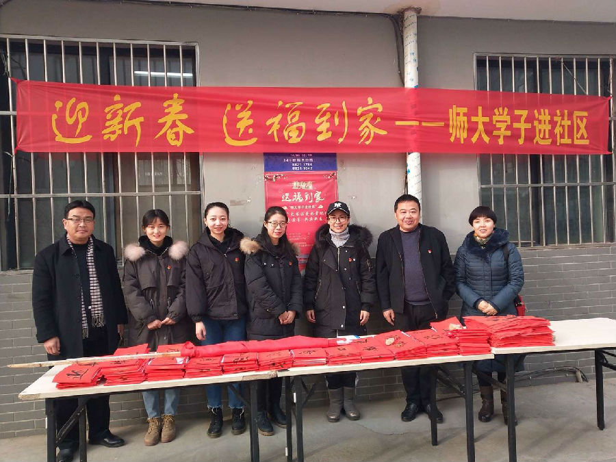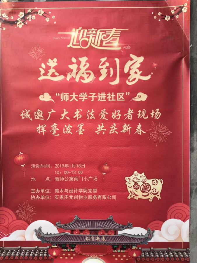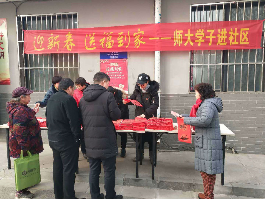 2019年1月18日,日本色情 党委组织日本色情 书法专业学生在师大教师公寓举办“写春联 送祝福”活动,为公寓的教职工与家属送上新春祝福。